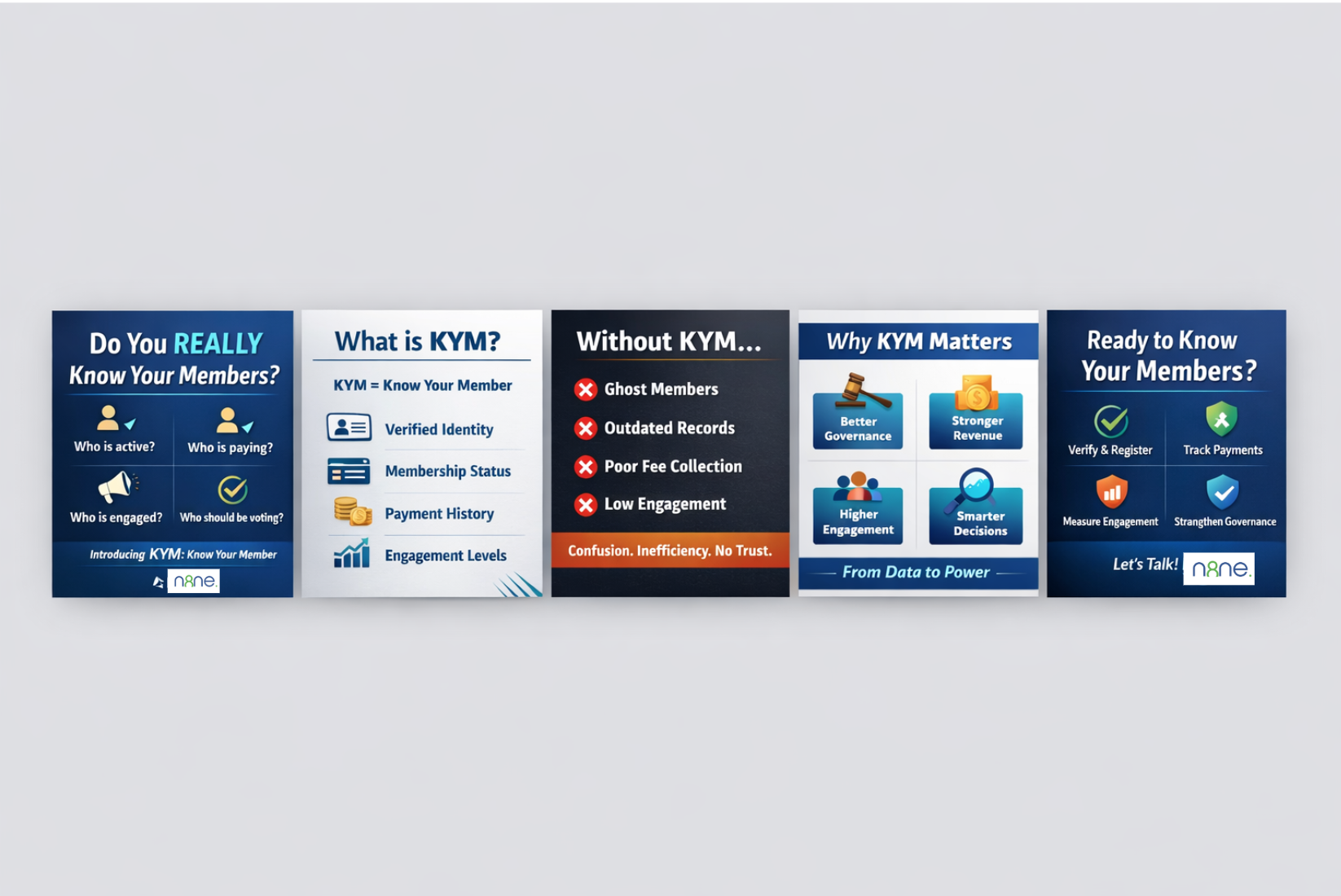 Many associations today still rely on scattered Excel sheets, outdated member lists, and manual tracking of payments and participation. This often leads to inaccurate or duplicate records, ghost members influencing decisions, poor fee collection, low engagement, and even a lack of trust in leadership. Without KYM, organizations are essentially operating blind.
